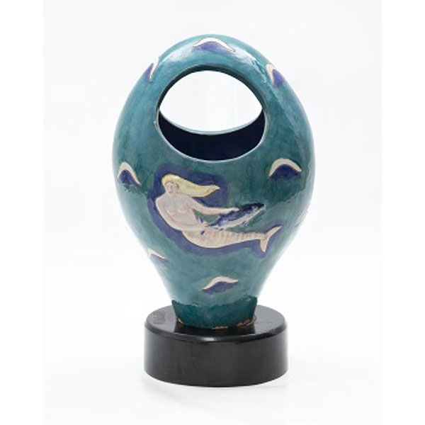 Cerámica esmaltada / Base de madera 38 x 22 x 16 cm.(Pequeño deterioro)