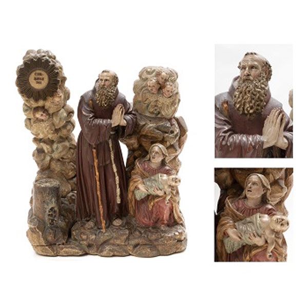 Talla representando San Francisco de Paula con la Virgen y el niño. Palencia. Época: S. XVI