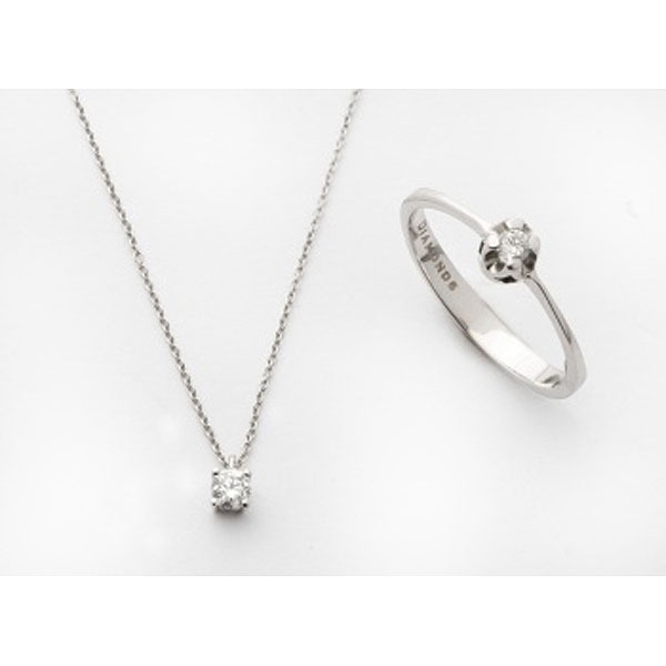 y cadena y colgante en oro blanco con diamante talla brillante con un peso total de 0,10 cts. aprox.. Peso: 3 cts. Nº Anillero: 12,5.