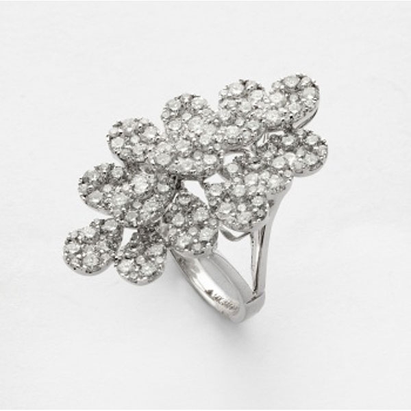 Importante sortija lanzadera en oro blanco con decoración de lágrimas cuajadas de diamantes talla brillante