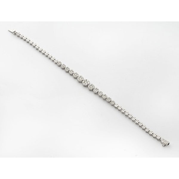 Pulsera en oro blanco con decoración de flores y 13 rosetones de diferentes tamaños cuajados de diamantes talla brillante con un peso total de 3,35 cts. aprox.