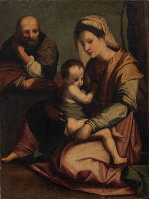 (S. XVI)"Sagrada familia"Óleo / Lienzo 49,5 x 36,5 cm.