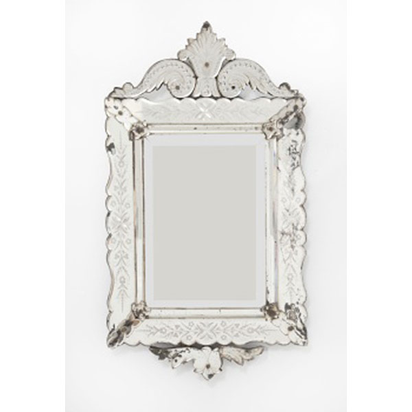 Espejo veneciano con marco en espejo grabado con decoración vegetal y flores. Luna biselada. Estilo Luis XVI.