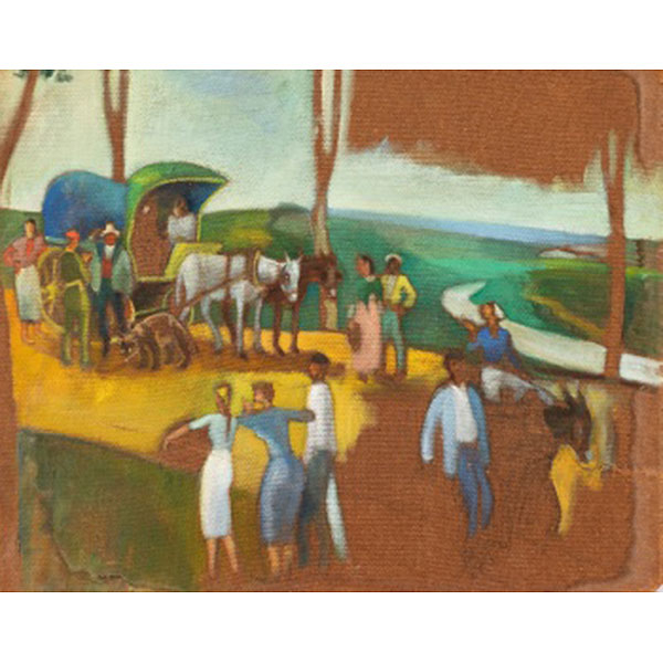 (Bilbao 1890 - 1986)"Paisaje con personajes, carro y caballos "