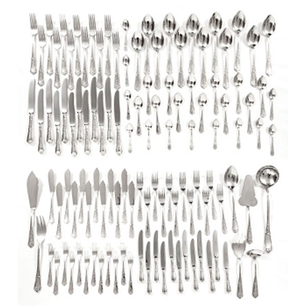 Compuesta por 115 piezas: 12 cucharas, 12 tenedores y 12 cuchillos de mesa, 12 tenedores y 12 palas de pescado, 12 cucharas, 12 tenedores y 12 cuchillos de postre , 12 cucharillas de moka, y 7 piezas de servir: cazo, cucharón, cazo de salsa, pala y tenedor de trinchar, tenedor de servir y pala de tarta.