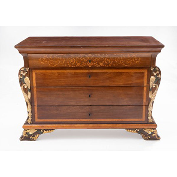 Cómoda en madera de caoba y marquetería Época Fernandina. España S. XIX.