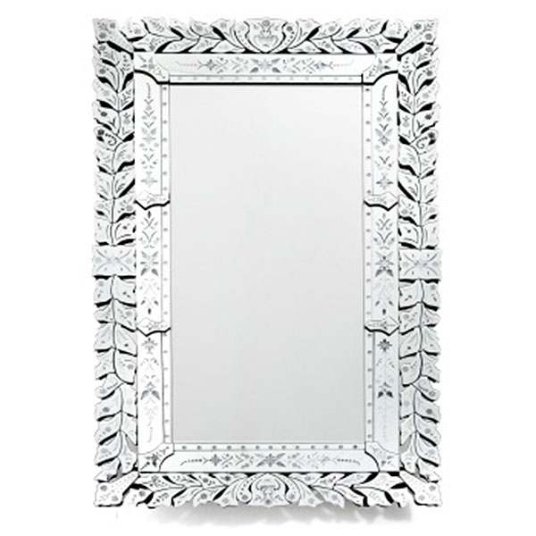 Espejo estilo veneciano en cristal tallado y grabado con decoración vegetal, jarrones con flores y hojas. Estilo Luis XVI.