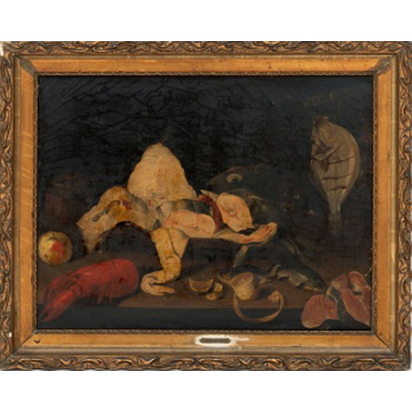 (Bilbao 1842 - Madrid 1874)"Bodegón de frutas, pescado, etc"