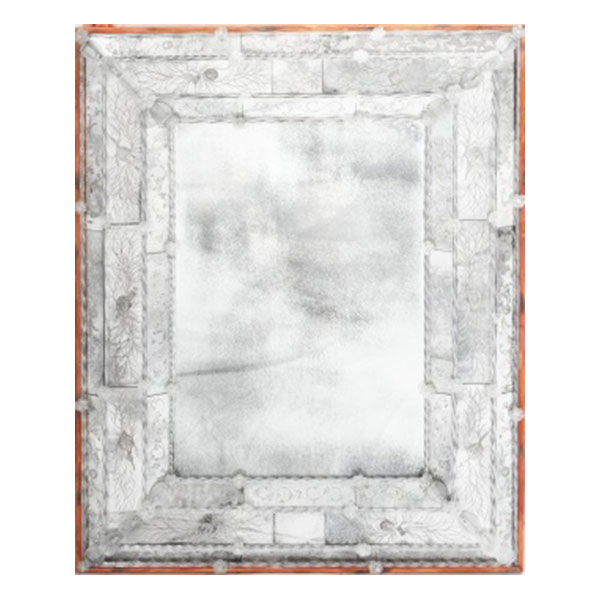 Espejo veneciano en cristal de Murano grabado y tallado representando flores y hojas. Estilo Luis XVI.