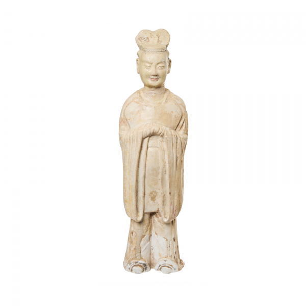 Dignatario en cerámica china policromada del periodo Ming, 1368-1644 d.C. En buen estado de conservación.