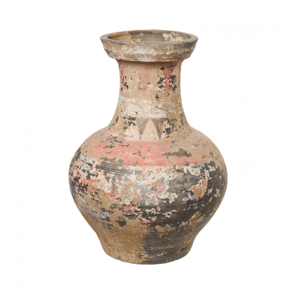 Vaso en cerámica china policromada de la dinastía Han, periodo del 202 a.C-220 d.C. En buen estado de conservación.