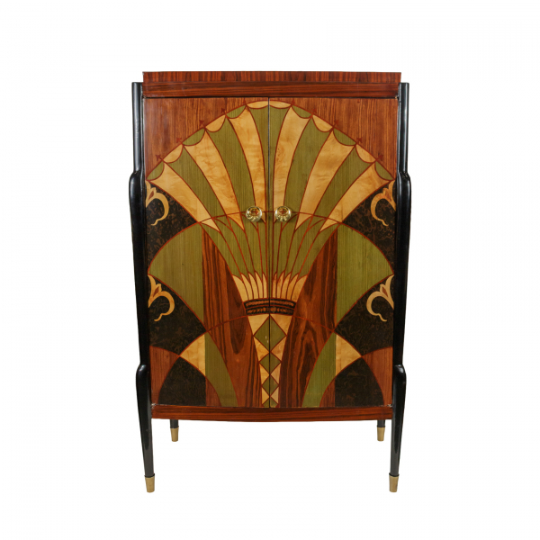Aparador estilo Art Deco en madera chapada con marqueterias en diversos acabados formando motivos geométricos, s.XX.