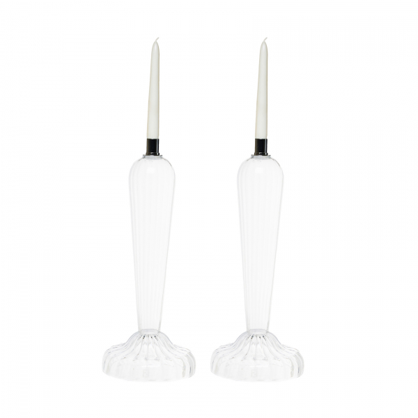 FENDI. Pareja de candeleros modelo «Bell» en cristal translúcido con decoración gallonada.