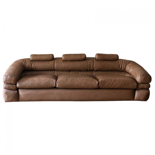 J. De Pass, D’Urbino y Paolo Lomazzi para Zanotta (Italia, 1954). Sofá de tres plazas modelo «Straccio» en piel de tonalidad marrón, c.1968.