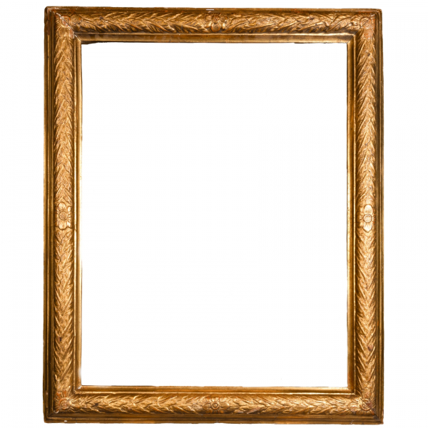 Marco en madera moldurada y dorada con motivos florales y vegetales tipo laurel, fles. del s.XVII-ppios. del s.XVIII.