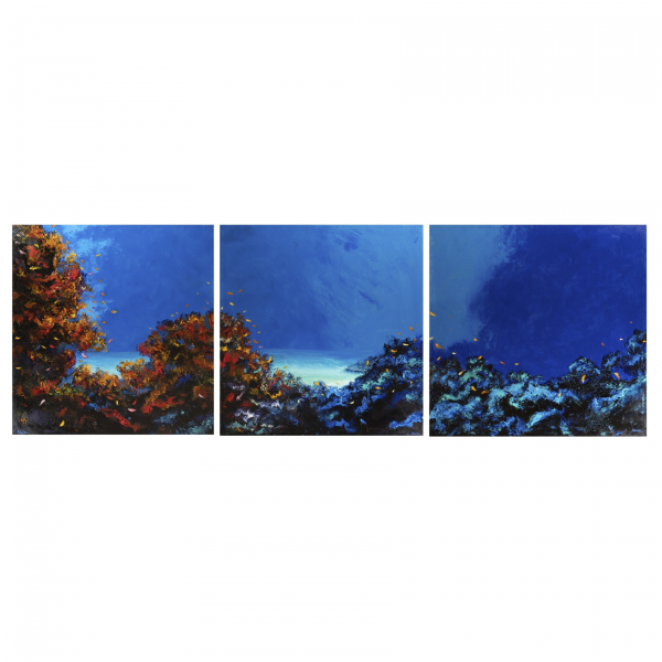 Tríptico de óleos sobre tela pintados bajo el agua. Firmados.