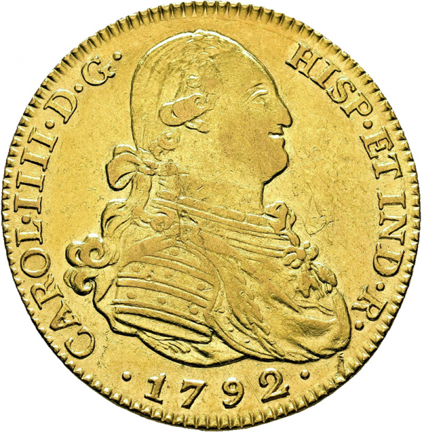 Moneda 1792 Carlos-IV Madrid MF 4 Escudos M.B.C.+