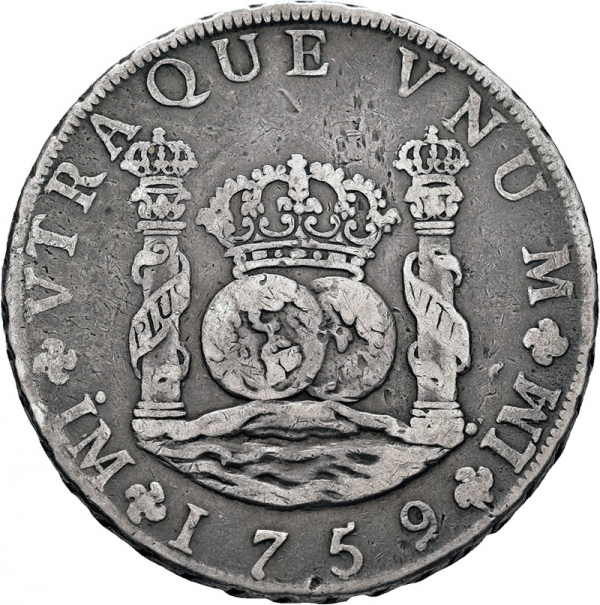 Moneda 1759 Fernando VI Lima JM 8 Reales M.B.C.