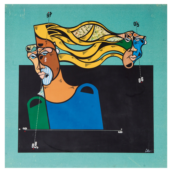 Oswaldo Aulèstia Bach (Barcelona, 1946) Sin título. Ploter y técnica mixta sobre tela adherida a tabla.
