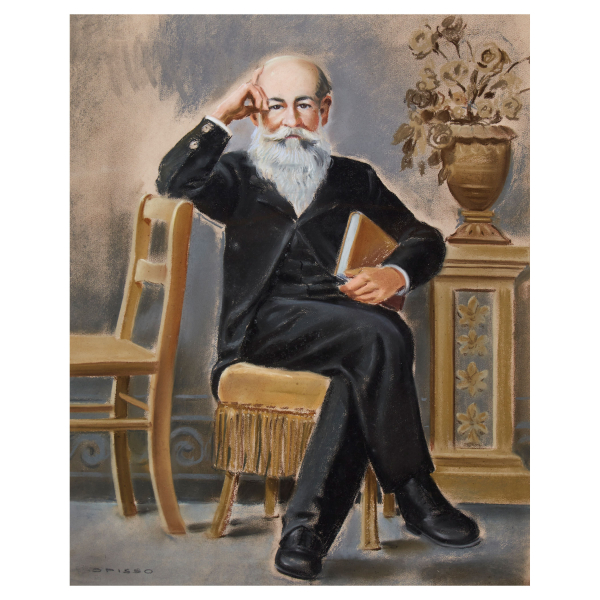 Ricard Opisso Sala (Tarragona, 1880-Barcelona, 1966) Retrato de caballero en interior. Dibujo a pastel sobre papel.