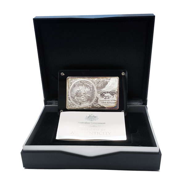 Moneda Australia, 2 Onzas de plata, año 2018. 25 Aniversario. Canguro con certificado y estuche.