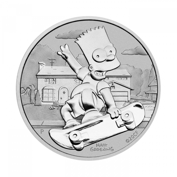 Moneda Tuvalu, 1 dólar de plata, año 2020. Bart Simpson.