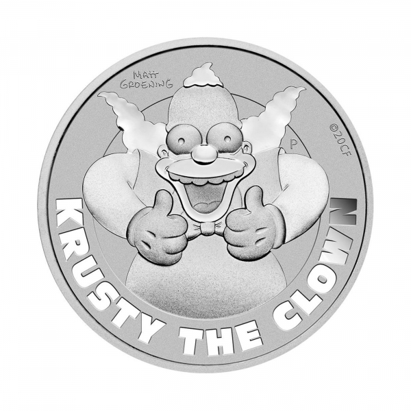 Moneda Tuvalu, 1 Dólar de plata, año 2020. Krusty el Payaso.