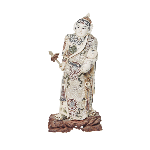 Guerrero con niño. Escultura japonesa en marfil tallado y entintado, c.1930-1960.