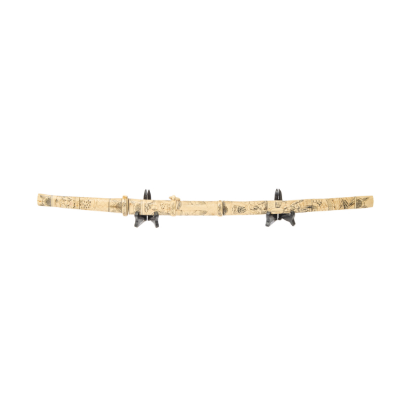 Wakizashi japonés en hueso tallado y entintado con decoración de motivos florales y personajes, s.XIX.