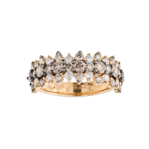 Sortija en oro rosa con tres bandas de diamantes talla brillante blancos y brown.