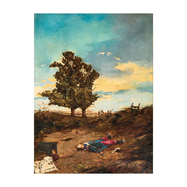 Francisco García Marco (Valencia, s.XIX) El final de la batalla. Óleo sobre tela. Firmado, fechado en 1881 y localizado en Valencia.