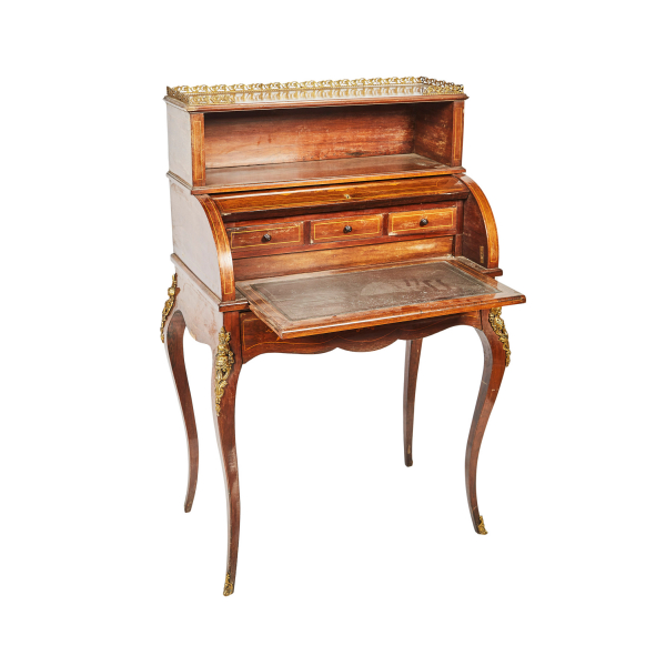 Escritorio francés en madera de caoba con marqueterías y fileteados en boj, fles. del s.XIX.