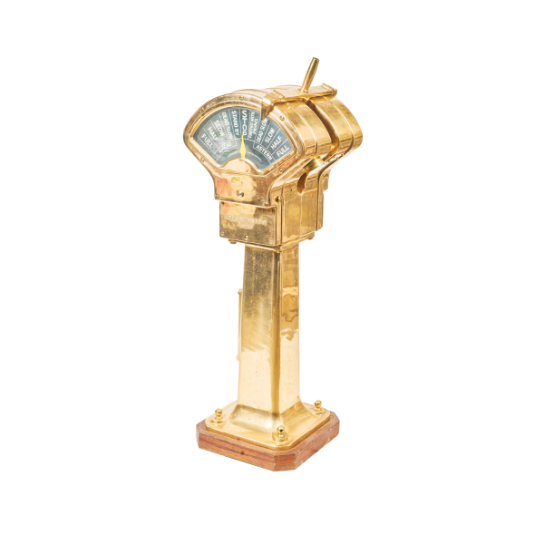 Telégrafo inglés de barco en bronce dorado y base en madera de la manufactura Siemens Brothers & Co. Ltd., Londres, primera mitad del s.XX.
