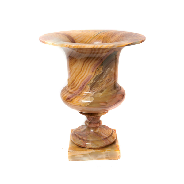 Gran copa ornamental en ágata tallada con decoración de líneas lisas, s.XX.