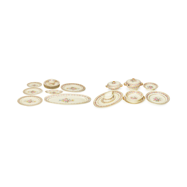 Compuesta por una sopera, una legumbrera, una salsera, dos bols de servir, un frutero, dos tazas de consomé, veinticinco platos llanos, ocho fuentes grandes y ocho fuentes medianas y pequeñas. Numeradas y marcadas en la base.