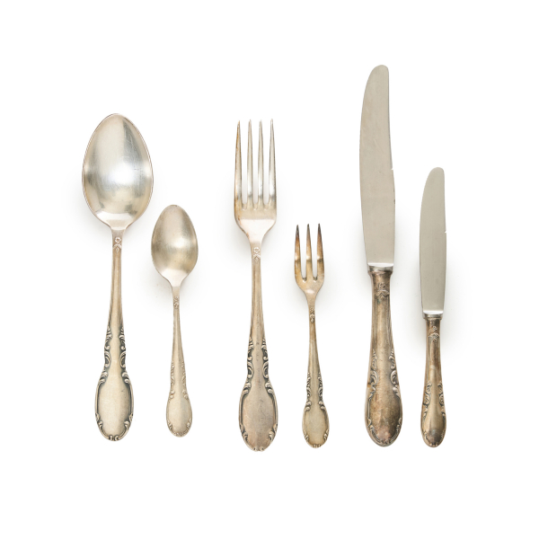 Cubertería en plata punzonada, s.XX. 36 piezas.