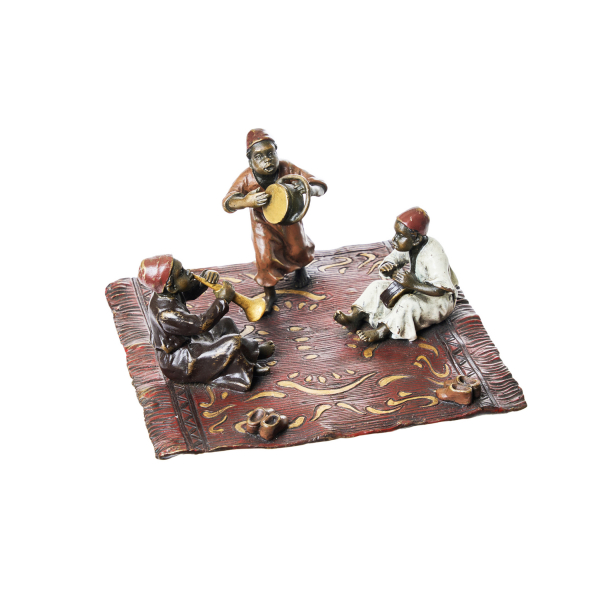 Franz Xaver Bergman (Viena, Austria, 1861-1936) Músicos sobre alfombra. Escultura en bronce esmaltado.