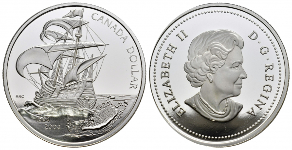 CANADA 2004, 1 dólar 400 Aniversario Settement (KM-512) 25,18 gramos, con caja y certificado.