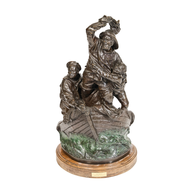 Grupo escutórico en bronce patinado sobre peana en madera.