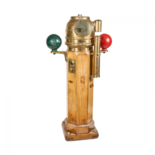 Bitácora de barco alemana en bronce dorado y madera barnizada de la manufactura W. Ludolph, Bremerhaven, primera mitad del s.XX.