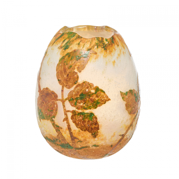 Jarroncito en «pâte de verre» doblado con decoración de motivos vegetales, c.1902.