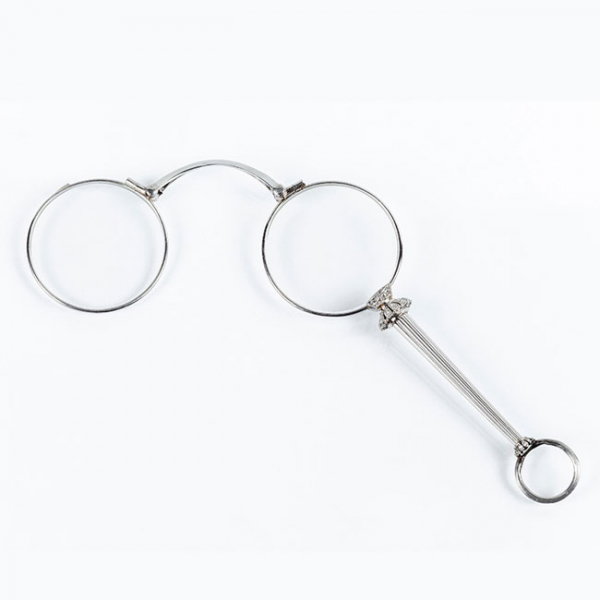 Delicados anteojos de ópera en platino y diamantes con mecanismo de apertura automática. Decoración estriada. Finales s. XIX - ppios. S. XX.