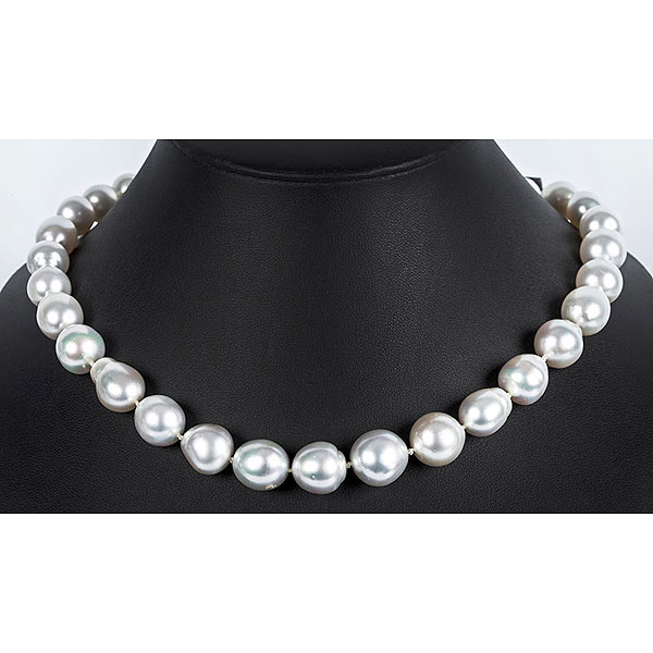 Bello collar "chocker" de 31 bellas perlas australianas, calidad gema, ligeramente ovales (entre 11,5 y 14 mm), de suave oriente.