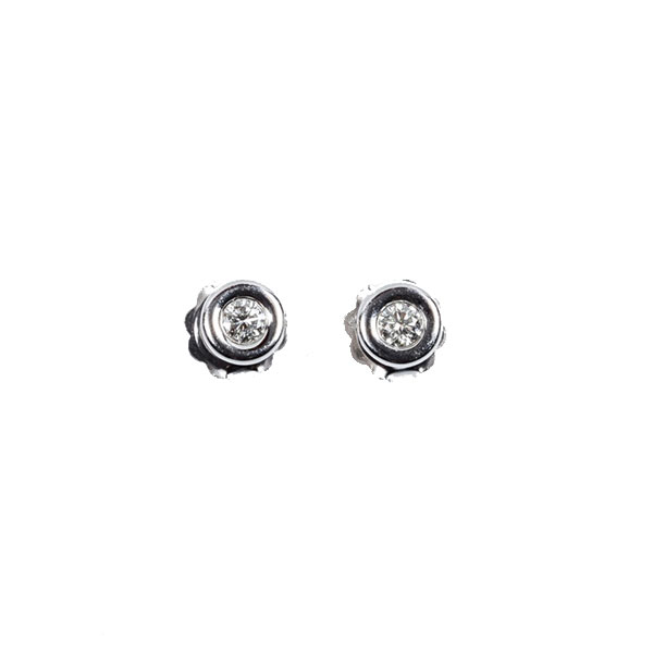 Pendientes solitarios en oro blanco con un limpio y blanco diamante, talla brillante, en chatón.