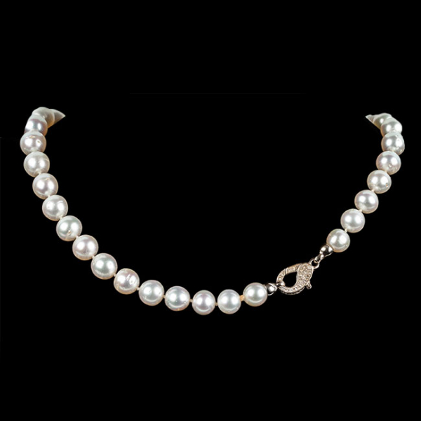 Collar formado por 37 perlas australianas de grueso oriente, muy ligeramente barrocas, en disminución del centro a las puntas (14 a 9,9 mm).