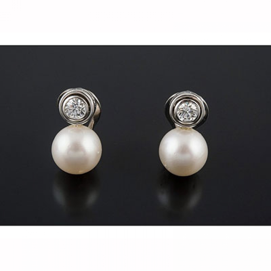 Fecha de fin 25/04/2017 a las 16:00:00 PENDIENTES Realizados en oro blanco, tipo "tú y yo", compuestos por dos diamantes talla brillante engastados en chatón, peso total aproximado: 1.10 ct. y dos perlas australianas calibradas en 13 mm. + INFO
