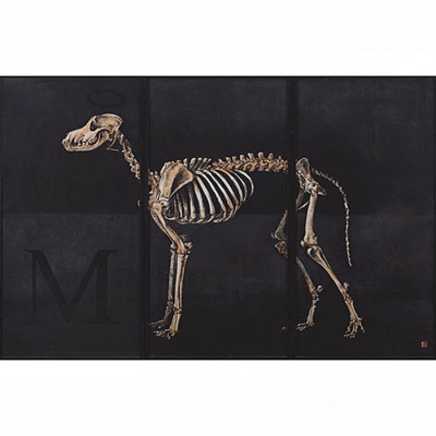 Fecha de fin 27/04/2017 a las 16:00:00 PAPINO LUCADAMO (Buenos Aires,1960) - Greyhound Skeleton Tríptico en tinta china, grafito y gouache sobre papel japonés de 143 x 218 cm. Firmado con anagrama.Presentado con instalación de luz en la trasera de la obra. + INFO