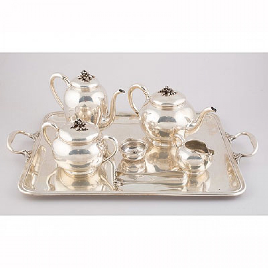 Fecha de fin 27/04/2017 a las 16:00:00 JUEGO DE CAFÉ Y TÉRealizado en plata en su color, decoración con motivos florares.