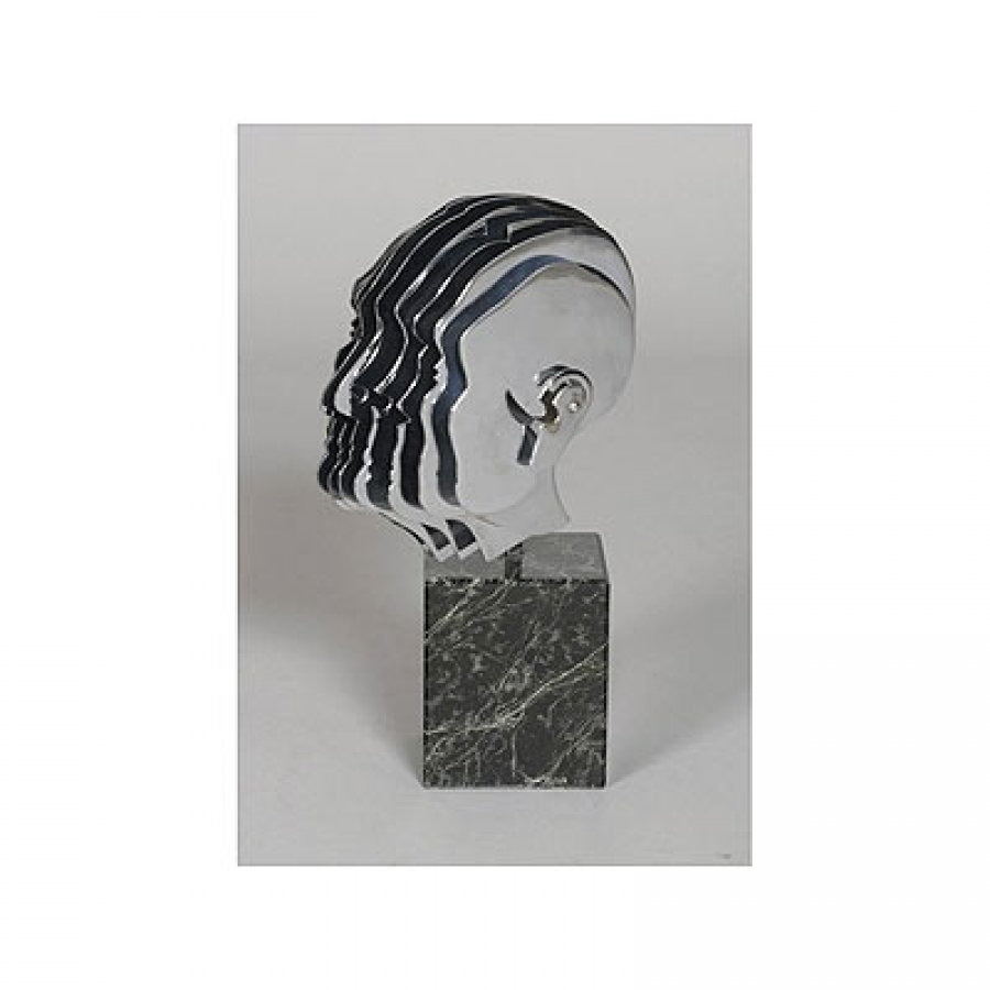 EUSEBIO SEMPERE (Onil 1923-1985) - Azorin. 1974 Escultura en acero cromado de 23 x 28 cm. Con base de mármol, altura con base:32 cm. Realizada con 12 piezas de acero cromado en una edicion de 20 ejemplares, sin numerar. Editada por la Galeria Juan Gris en 1974.Adjunta certificado de Carmen Mateo Ortiz en el que señala que la pieza fué adquirida al artista. Bibliografia: -Josep Media: Sempere. Ed. Poligrafa, Barcelona 1976.p. 278-279, 414-415. -M.V. Pastor Ibañez. Eusebio Sempere. Instituto de Estudios Alicantinos, 1978, p.80. +INFO