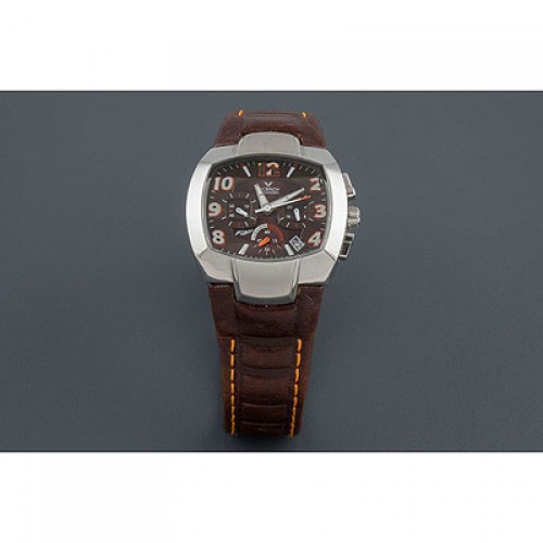 RELOJ VICEROY FERNANDO ALONSO Realizado en acero para caballero. Caja cuadrada, bisel uliso. Funciones: horarias, minuteras, segunderas, cronográficas y calendario . Tres contadores en esfera alas 6h, a las 9h y a las 12h. Esfera negra. Ventana para calendario entre las 4 y las 5h. Numeración mixta: arábiga y baquetonada, agujas tipo bastón. Movimiento de cuarzo. Brazalete original de piel con cierre desplegable de acero.